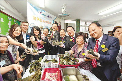 ■湯修齊聯同一眾總理,馮偉昌包粽子送予長者。