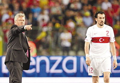 ■希丁克(左)昨指揮土耳其大軍。美聯社