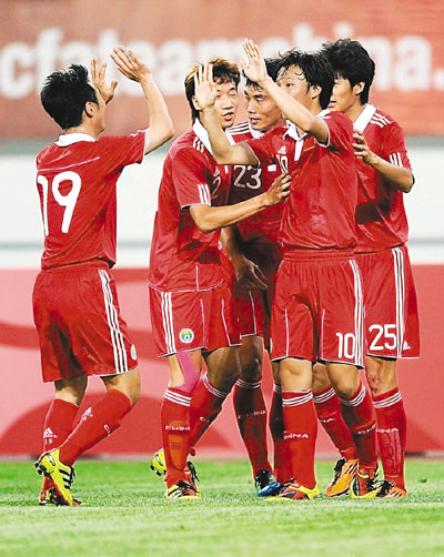 香港文匯報訊(記者 梁啟剛)8日晚,中國國家足球隊(國足)在新落成的貴陽奧林匹克體育中心球場,與朝鮮國家隊進行熱身賽,這是國足在7月下旬世界盃外圍賽第二階段賽事前的最後練兵;結果,靠郜林一傳一射,國足以2:0淨勝朝鮮,連續3場友賽取勝兼6場不敗。