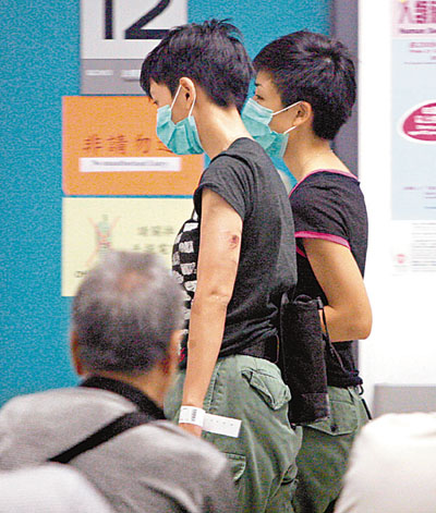 ■被催淚彈火屑灼傷女警送院時,左上臂後有一個5元硬幣大小灼傷痕跡。 香港文匯報記者溫瑞麟 攝