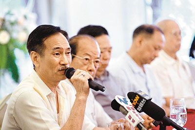 由豬肉買手、運輸人士等組成的鮮肉大聯盟10多名代表,昨午於記者會場外請願。大聯盟理事關國華批評,現時本港入口活豬數量由3間代理商控制,代理商「藉機」推高拍賣價,從中賺取更多佣金,「這間(代理商)今天入口多些豬,但其他2間沒有跟隨,供港活豬永遠偏低」。