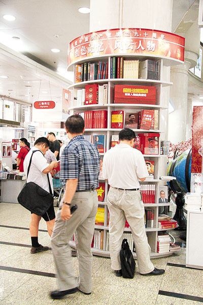 自5月以來,「紅書」銷售一路升溫,走俏於全國各地,為內地讀者帶來了一餐「美味可口」的紅色「閱讀盛宴」。記者了解到,以慶祝建黨90周年重點圖書為代表的紅色經典在內地持續熱銷,在最新的統計中,已位列各類書籍銷售的第一位。新世界出版社出版的《歷史的軌跡:中國共產黨為什麼能?》出版月餘,就已發行20萬冊,英文版版權輸出已簽署協議。年初與讀者見面的中共黨史出版社出版的《中國共產黨歷史》(第二卷),出版後更是引起了社會的廣泛關注,目前已發行100萬套,同時亦帶動《中國共產黨歷史》(第一卷)發行70萬套。