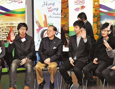 ■曾蔭權昨與30多位在澳洲留學的香港學生交談,簡介香港的最新發展,並鼓勵他們努力學習,發展所長。