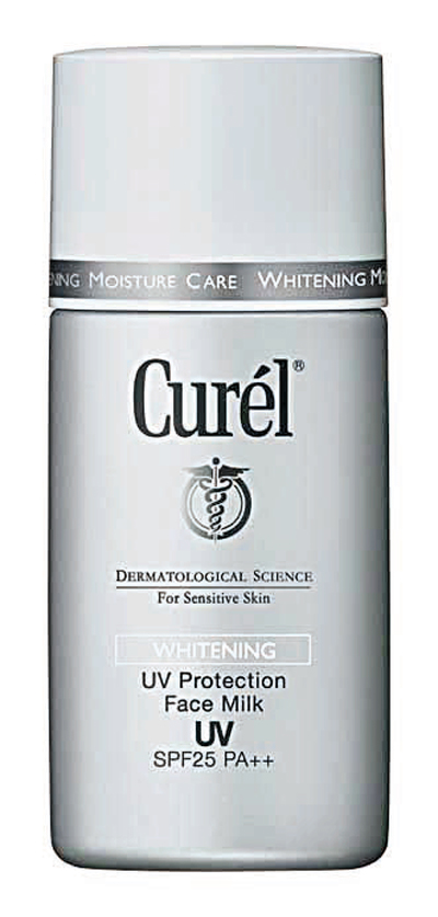 日本人氣敏感肌膚護理品牌Curel,其多功效美白防曬乳液,能抑制黑色素形成,有效預防並減退已形成的色斑及雀斑,同時更可抗紫外線及乾燥,全面保護肌膚。