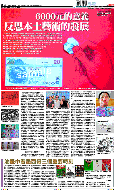立法會於4月通過的本年度財政預算案中,同每個人都有切實關係的,自然是向每位18歲或以上永久性居民派發港幣6000元。但這派錢舉措,隨後便在社會各界掀起廣泛質疑和討論,並一路持續升溫,更牽涉各行各業的爭議。視覺藝術界對此的反響可謂最直接,一批藝術家選擇「用作品說話」,通過創作一個花完這6000元的藝術作品「計劃書」,以表達他們對政府派錢背後暴露出的種種對本地藝術發展的忽視之保留意見。數百億港元不能不說是筆大錢,但對於市民、特別是本土藝術工作者而言,是否真的「等錢使」?從而領受政府的「體貼」之情?意圖之好,與實際產生作用是否好,顯然存有期望與現實的落差。《6,000》觀念藝術計劃書展覽,便是一個以藝術創作為窗口,展示藝術家們深層思考觀念的抒發平台,他們將反思化作話語,希望藉著這些作品喚起香港的共同反思。 ■ 文:香港文匯報記者 賈選凝