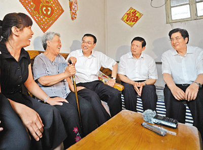 在門頭溝採空棚戶區,李克強走進居民家中,了解他們的生活現狀。在得知61歲的劉金閣因曾經做過插隊知青,而有戶口卻沒有房子住時,同樣做過知青的李克強表示理解,「無論如何,都要有個安身之地。你們默默辛勞一生,黨和政府有責任為你們解決困難,改善您的住房。」