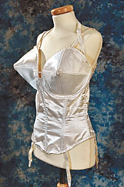 白色的絲質胸衣配上誇張的錐形胸杯,附有吊扣。麥當娜於「Blonde Ambition巡演」彩排時穿上此經典服裝。