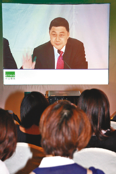 ■中滔環保主席兼董事總經理徐湛滔透過視像與香港傳媒見面。香港文匯報記者張偉民 攝
