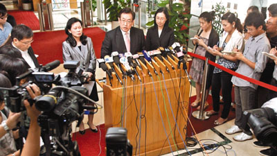 ■食物及衛生局局長周一嶽(中)公布明年非本地孕婦在港分娩名額,其中公立醫院限額大減65%。 香港文匯報記者梁祖彝 攝
