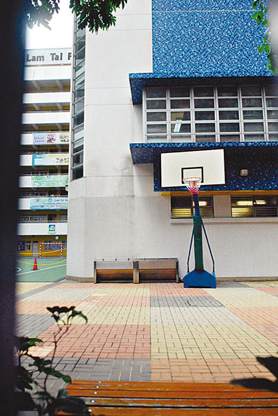 ■膠水樽被擲落校內操場籃球架附近爆開。
