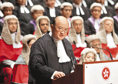 ■馬道立上年接任李國能為終審法院首席法官。圖為馬道立主持香港司法機構2011年法律年度開啟典禮。 資料圖片