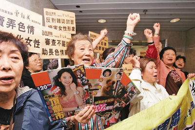早前有近30名婦女到淫褻物品審裁處請願,抗議消閒雜誌以女性祼照及貶低女性的字眼為封面,要求審裁處嚴格監控。資料圖片