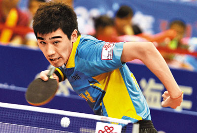 據新華社電 26日晚,中國乒超聯賽第1階段第6輪第22場比賽在海南省屯昌縣舉行。王皓領銜的八一熔盛重工隊以3:0輕取寧波海天塑機集團俱樂部隊。其中,閆安(圖)3:2勝馬龍為八一隊先拔頭籌,其後王皓挫吉田海偉,周雨/閆安勝吳灝/王建軍,為八一鎖定勝局。女隊方面,主場迎戰廣州時代地產隊的北京控股女乒一掃本賽季前五輪的低迷狀態,以三個3:0直落三盤取得賽季首勝。