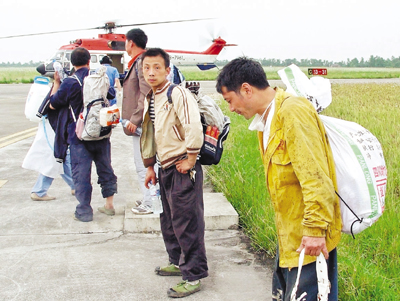■通用航空的其中一個任務是搶險救災。圖為因汶川地震而被困多日的礦工被救出後登上通用航空飛機。 資料圖片
