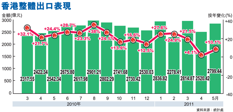 上月升10% 港出口反彈勝預期 (圖)