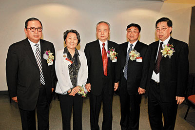■(左起)林建岳、周秉德、高振普、李捷與李國強留影。