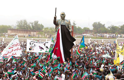 隨著當地時間凌晨零時鐘聲響起,全球最新國家南蘇丹共和國昨日正式立國。在首都朱巴市區,數以萬計民眾瘋狂慶祝。煙火照亮天際,民眾手舞足蹈,街上擠滿車輛,司機猛響安,乘客從車窗揮舞新國旗。
