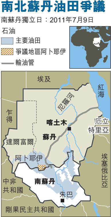 南北蘇丹近月就阿卜耶伊問題屢爆衝突,上月終就該地區非軍事化問題達成協議,為昨日南蘇丹立國奠定鞏固基礎。然而,靠近南北分界線的南科爾多凡州仍衝突不斷,雙方就石油資源糾纏不清。兩國簽署阿卜耶伊協議後,南州將是爭論的下一焦點,南北關係仍面臨很多挑戰。