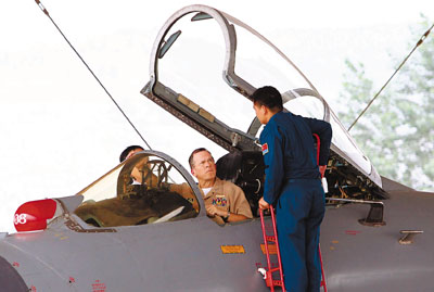 ■美國參謀長聯席會議主席馬倫登上了蘇-27飛機駕駛艙,與飛行員進行了交流。新華社