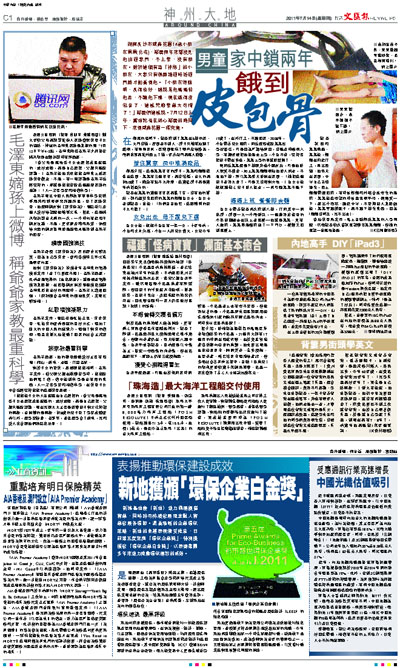 是項選舉由《都市盛世》雜誌主辦,邀請環保團體、工商業界協會及學術界等代表成立專業評審委員會,就企業的環保策略與方針、計劃與表現、領導環保意識及創新意念四大範疇,選出環保表現卓越的企業。結果新地連續五年獲得嘉許,並奪得「環保企業白金獎」最高殊榮,足證新地在業內的領導地位。