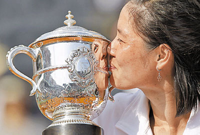 ■中國選手李娜在法國網球公開賽女單決賽勇奪冠軍。 資料圖片