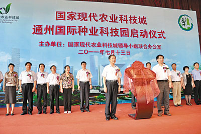 ■科技部黨組成員、副部長張來武,北京市委常委牛有成共同為通州國際種業科技園揭牌。時燕歌 攝