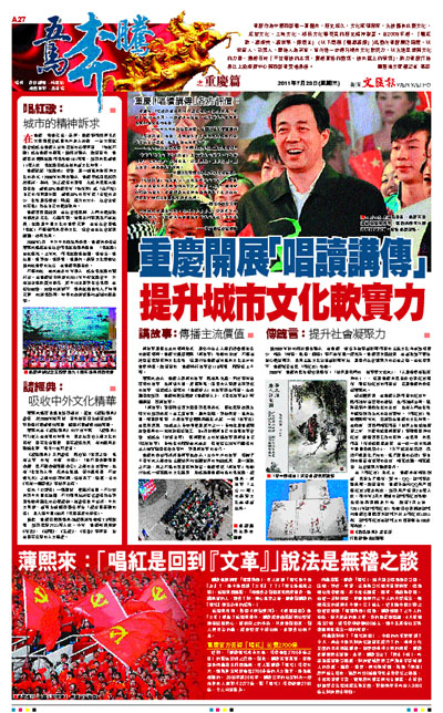 薄熙來:「唱紅是回到『文革』」說法是無稽之談 (圖)