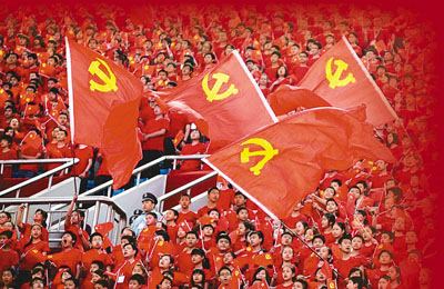 ■重慶舉行「十萬人紅歌會」,現場氣氛熱烈。