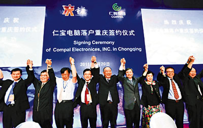 ■仁寶電腦在渝落戶,標誌著全球六大電腦代工廠商齊聚重慶。