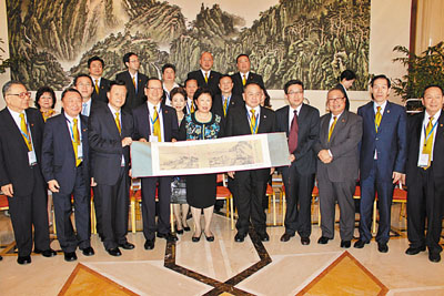 中央統戰部副部長尤蘭田(前排左五)等親切會見訪京團一行並致送紀念品