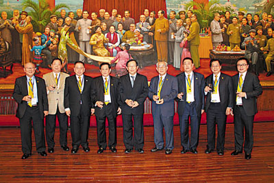(左起)藍鴻震、林銘森、余國春、李金松、萬鋼副主席、林廣兆、沈家燊、李常盛、馬鴻銘合影。