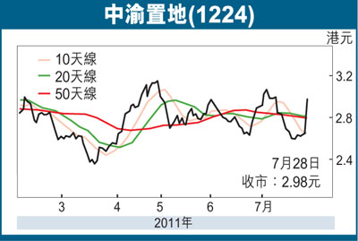 中渝盈利前景樂觀,也獲得大行認同,德銀在剛推出的研究報告中,便首予中渝買入評級,目標價為4.62元,即較現價尚有約55%的上升空間。據德銀指出,在內地房地產市場緊縮信貸之際,中渝財務實力強勁,可實現反周期的業務擴張。在股價強勢已成下,料短期有力再試年高位3.55元