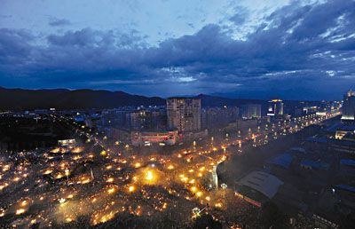 四川省西昌彝族火把狂歡夜,100餘萬支火把、37餘萬當地群眾和遊客歡聚在西昌市內載歌載舞,盡享火把節的快樂。 新華社