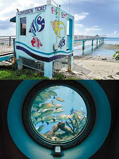 在魚眼海洋公園裡,欣賞色彩繽紛的熱帶魚群。