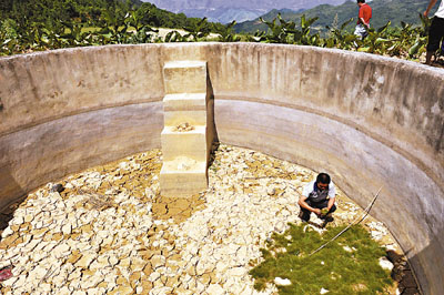 7月以來的高溫少雨天氣致使廣西西北部部分地區出現中到重度氣象乾旱,其中百色市隆林各族自治縣旱情較為嚴重。圖為隆林各族自治縣者保鄉作歡村一座乾涸的地頭水櫃已滋生出青苔。 新華社