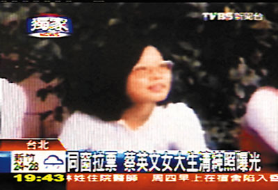 另一張照片是準備畢業時,女同學個個濃妝豔抹,蔡英文還是一件白襯衫,但也算趕時髦,戴著有顏色鏡片的眼鏡,這是出外深造前的留念(見圖)。小英舊同窗稱,「那天我在場,她跟她媽媽吵了半小時,因為他媽叫她穿裙子,她死都不肯。」