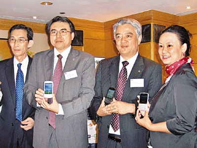 ■左起:TCL通訊首席財務官廖旭東、執行董事兼首席執行官郭愛平、TCL多媒體執行董事兼首席執行官趙忠堯、財務總監張健。 香港文匯報實習記者蘇倩 攝