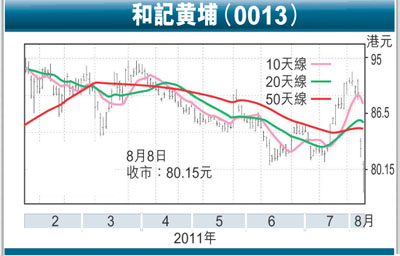 和記黃埔(0013)自上周二高位的93.1元水平回落,昨曾低見77.05元,較高位回落的幅度已達17%,可能是短期超賣嚴重,也吸引實力買盤撈底,其收市以80.15元,雖仍跌2.75元或3.32%,但該股可以拋離日內低位報收,顯示資金趁低收集的意慾頗強。
