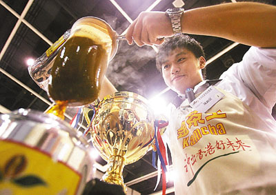 陳錦匯師父李兆成昨日到場為徒弟打氣。他說,沒有獨門秘方,但會教導徒弟各種茶葉的特性,以及配搭方法。陳錦匯於比賽前2天開始備戰,從大會提供的5種茶葉中,選出大黃金、中粗葉及幼茶,搭配出「獨步單方」。他說,大黃金帶出茶香,中粗葉可產生回甘,幼茶則散發濃濃香味,互相配搭帶出最佳效果。