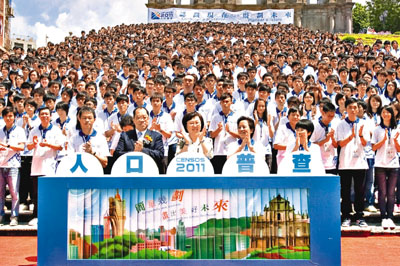 澳門10年一度的人口普查昨日早上舉行啟動儀式。2,000名普查員齊集在澳門大三巴牌坊,由代理行政長官陳麗敏監誓。