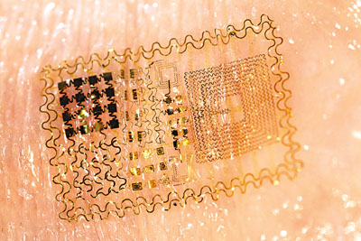 智能皮膚以天線傳送資料,透過電磁感應發電,如作長期監察則可容納微型太陽能電池或儲存電容器。它可像膠布黏附在皮膚上,量度心跳、肌肉移動、腦電波等。它亦能用作電子繃帶,釋放熱力加快傷口癒合,更可為義肢帶來觸覺。