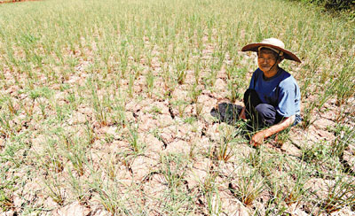 ■四川省古藺縣某村,一名農民看著乾裂的稻田,一臉憂心。 新華社