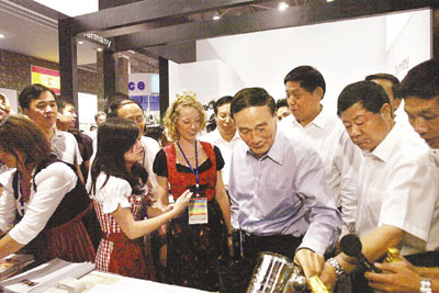 ■國務院副總理王岐山在中國(貴州)國際酒類博覽會暨2011中國.貴陽投資貿易洽談會德國館參觀。