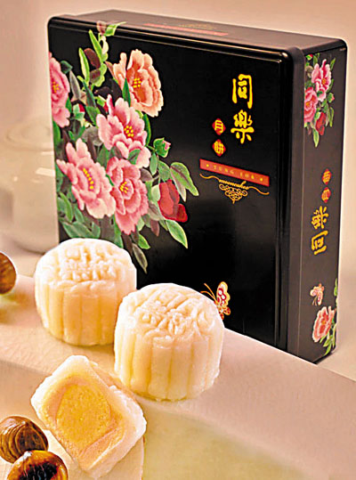 來自新加坡製造的同樂酒心冰皮月餅,破格用上香檳、Bailey's製成酒心,帶來獨特口味,包括低蔗糖紅豆香檳月餅及摩卡咖啡Bailey's月餅,其中的摩卡咖啡Bailey's月餅,Mocha咖啡味道香濃,而Bailey's則令月餅質感幼滑。