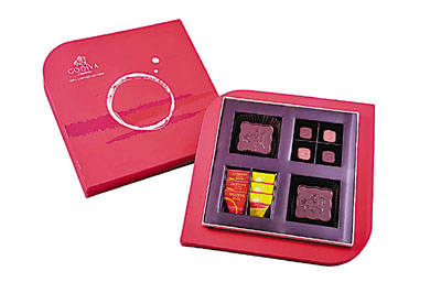 名牌朱古力GODIVA也湊熱鬧,品牌甄選來自秘魯、哥斯達黎加、烏干達的可可豆,為傳統的中秋量身打造了限量巧克力月餅禮盒,全新推出三款中秋限量巧克力口味月餅︰濃郁特色的秘魯可可口味、芳香醇厚的烏干達純巧克力口味、加勒比海風情的哥斯達黎加可可口味,口味獨特。內含四顆限量可可與牛奶的巧克力月餅,以及兩顆精心打造的秘魯可可口味純巧克力月餅,還附上六片新款牛奶咖啡味巧克力和純巧克力。