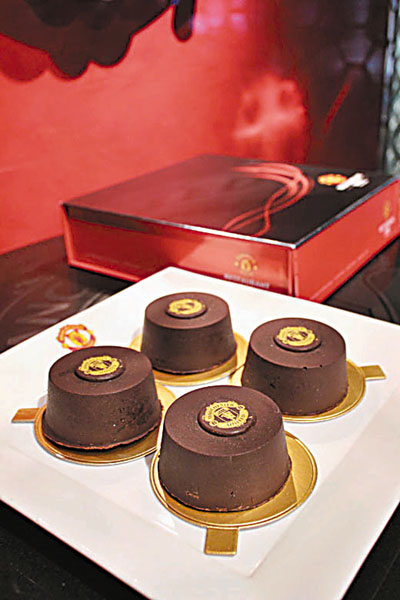 同樣以朱古力為號召的月餅,今年曼聯餐廳首次推出曼聯朱古力月餅禮盒,禮盒以曼聯的招牌紅黑色為主色調,設計時尚高雅。禮盒內盛著之四個朱古力月餅,均嚴選70%比利時黑朱古力製作而成,內裡包裹著兩層不同口味的餡料:Oreo曲奇脆脆加上朱古力海綿蛋糕脆脆,帶來既濃郁香醇又鬆脆的雙重口感。
