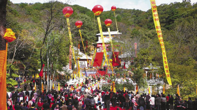 相傳每年農曆三月初三是盤古的生日,附近以及周邊的信眾都會雲集盤古山進行祭祀、禱告。「人們敬香不是一支一支的插,而是一捆捆的往香火上扔,盤古廟前的香火堆形成了一個小山包,虔誠的信民在香火前面狂熱的跪拜,表達對人祖的追念。」當地的山民向記者描述盤古廟會時的盛況,「甚至有人在盤古廟裡向盤古爺求藥賜壽、占卜前程,相傳用盤古廟的香灰燒雞蛋或者饅頭吃就能身體健康。」不難看出,生活在盤古山一帶的人們把盤古奉為至高無上的神靈,樸素而又原始的思想支撐著這裡百姓安居樂業,當地就有俗語稱:「東西南北搬,不離盤古山」。