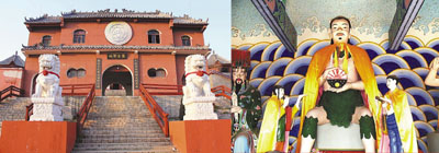 ■「中國盤古聖地」泌陽縣盤古山盤古廟,右圖為廟內的盤古神像,與桐柏縣的截然不同。泌陽縣宣傳部供圖