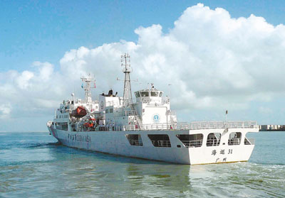 ■中國目前最大的海巡船從海口港出發巡航北部灣。 香港文匯報記者何玫 攝