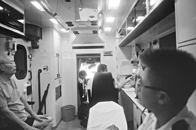 ■交表申領6千元途中遇意外受傷老翁(左)登上救護車敷治。